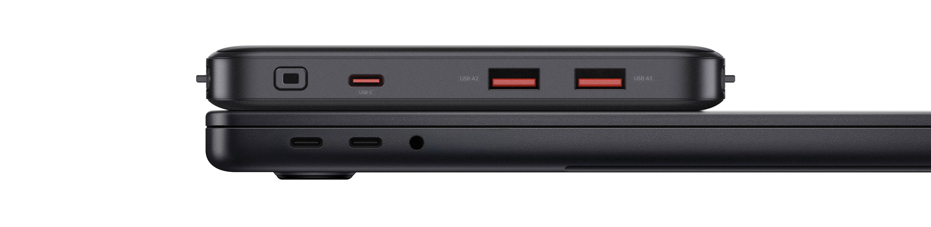 Stay powered on the go with our 100W Slim Power Bank. Designed for laptops, it features 2 USB-C Connectors, 1 USB-C port, and 2 USB-A ports for versatile charging. The sleek, portable design fits easily in laptop bags, while safety features protect against overheating. Charge fast and travel light!