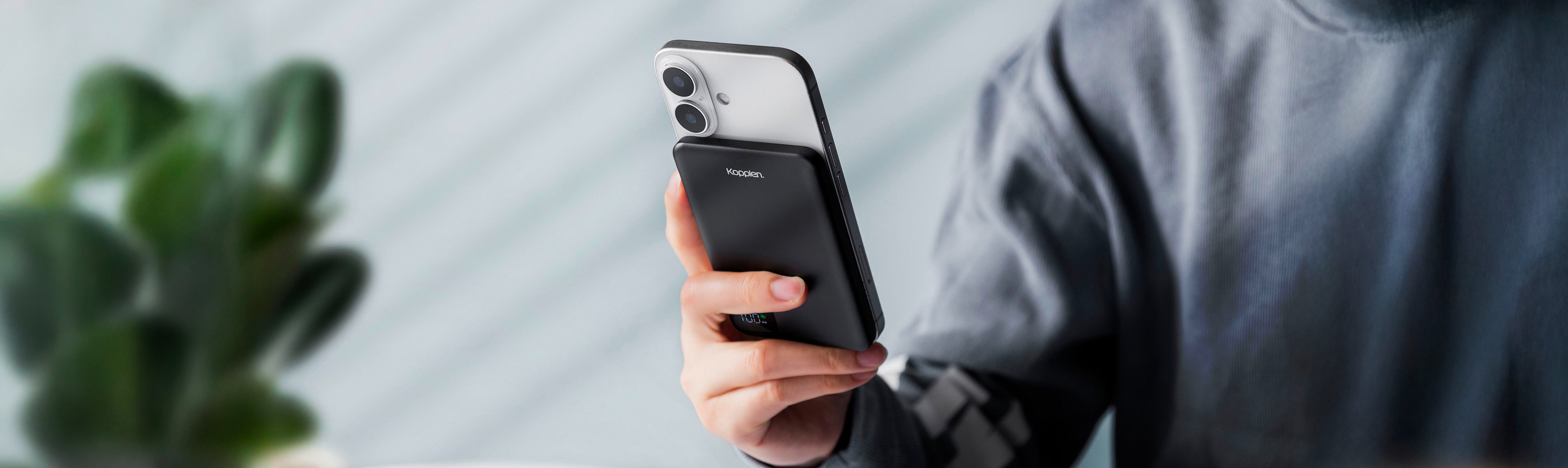 Power Bank 20,000mAh | Portable Phone Charger, USB-AKopplen Power Bank next to iPhone 16 pro