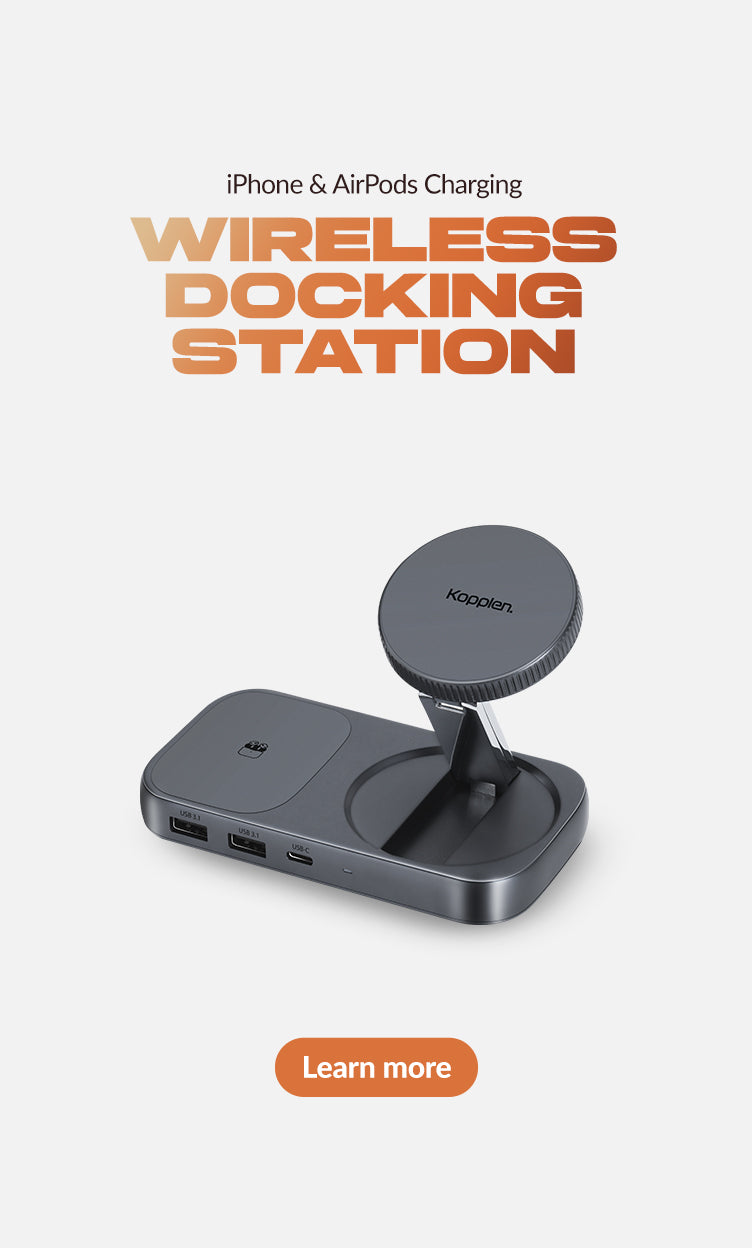 This sleek, foldable docking station powers your phone and earbuds while connecting to your display via 4K HDMI. Perfect for both workspace setups and travel, this all-in-one dock charger keeps your devices organized, charged up and ready to go.