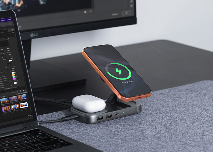 This unique dock offers 15W wireless charging¹, 10Gbps data transfers² and 4K 60Hz for dual-screen setups.