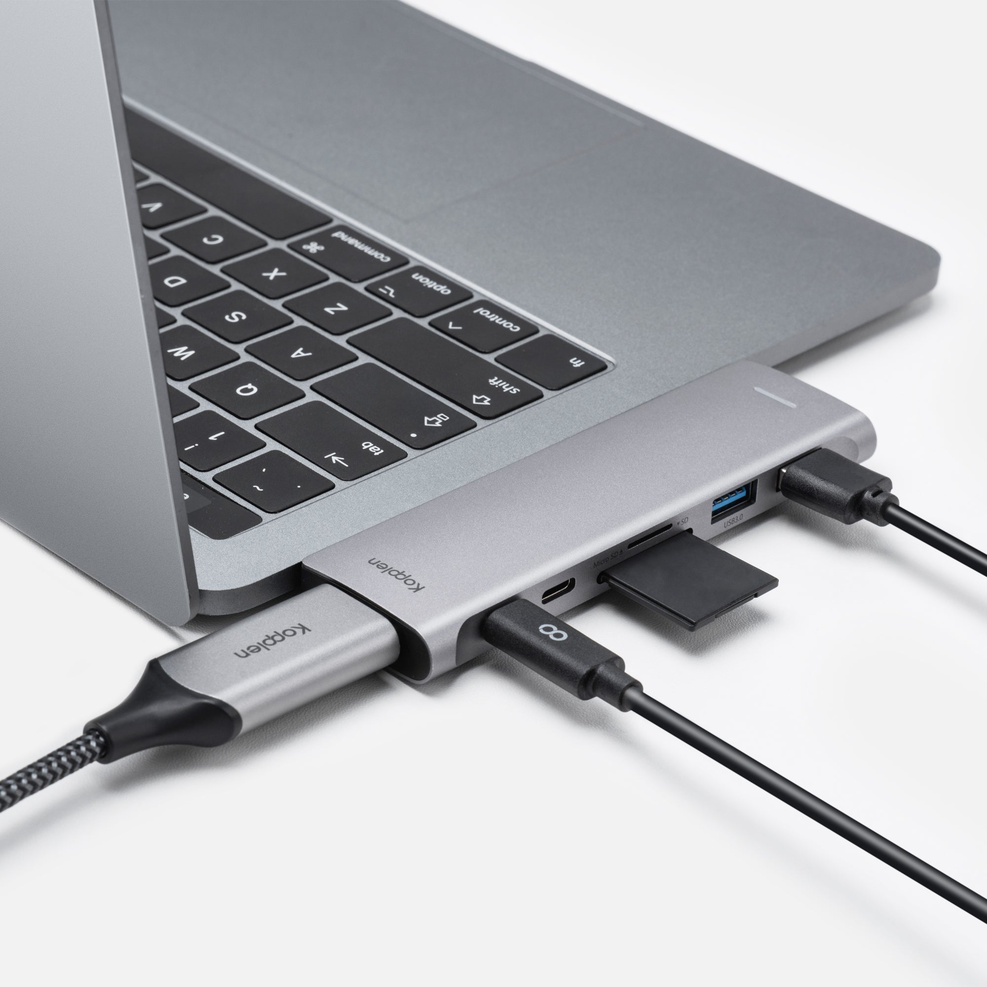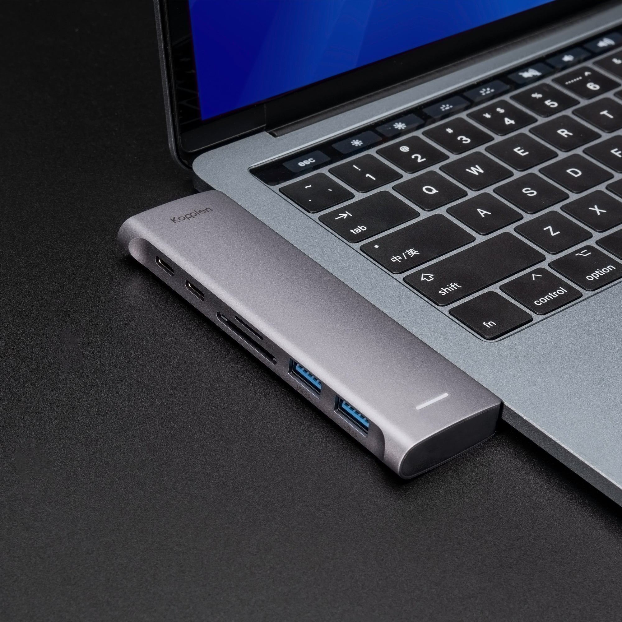The Kopplen USB-C 7-Port Multi-function Hub is an all-in-one solution for expanding connectivity on your MacBook Pro/Air or Windows laptop. This hub includes 1 HDMI port for 4K streaming, 2 USB-A ports for 5Gbps data transfer, 1x USB-C PD for fast charging and 10Gbps data transfer, 1x USB-C data port that supports data transfer up to 5Gbps , and SD/microSD card readers. With its gold-plated connectors, it ensures seamless and reliable connectivity, making it an essential accessory for enhanced productivity and media sharing.