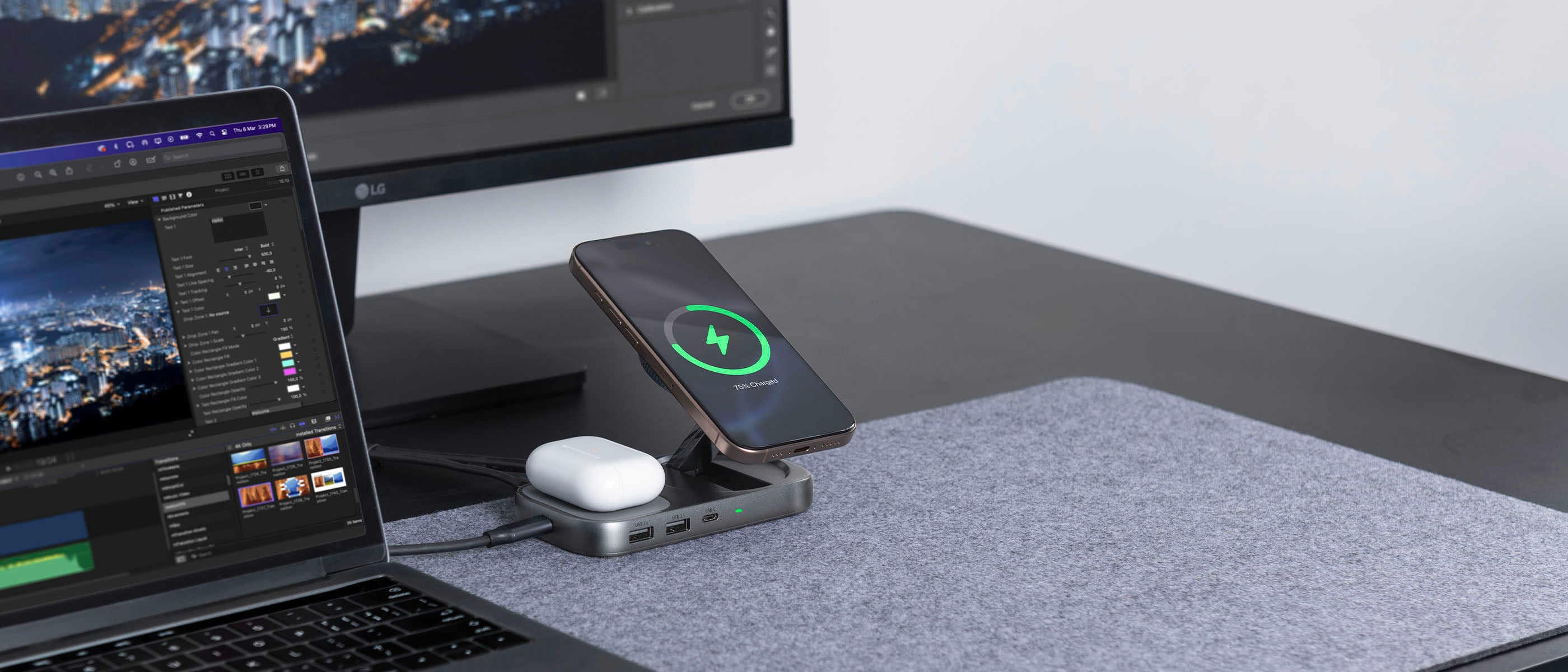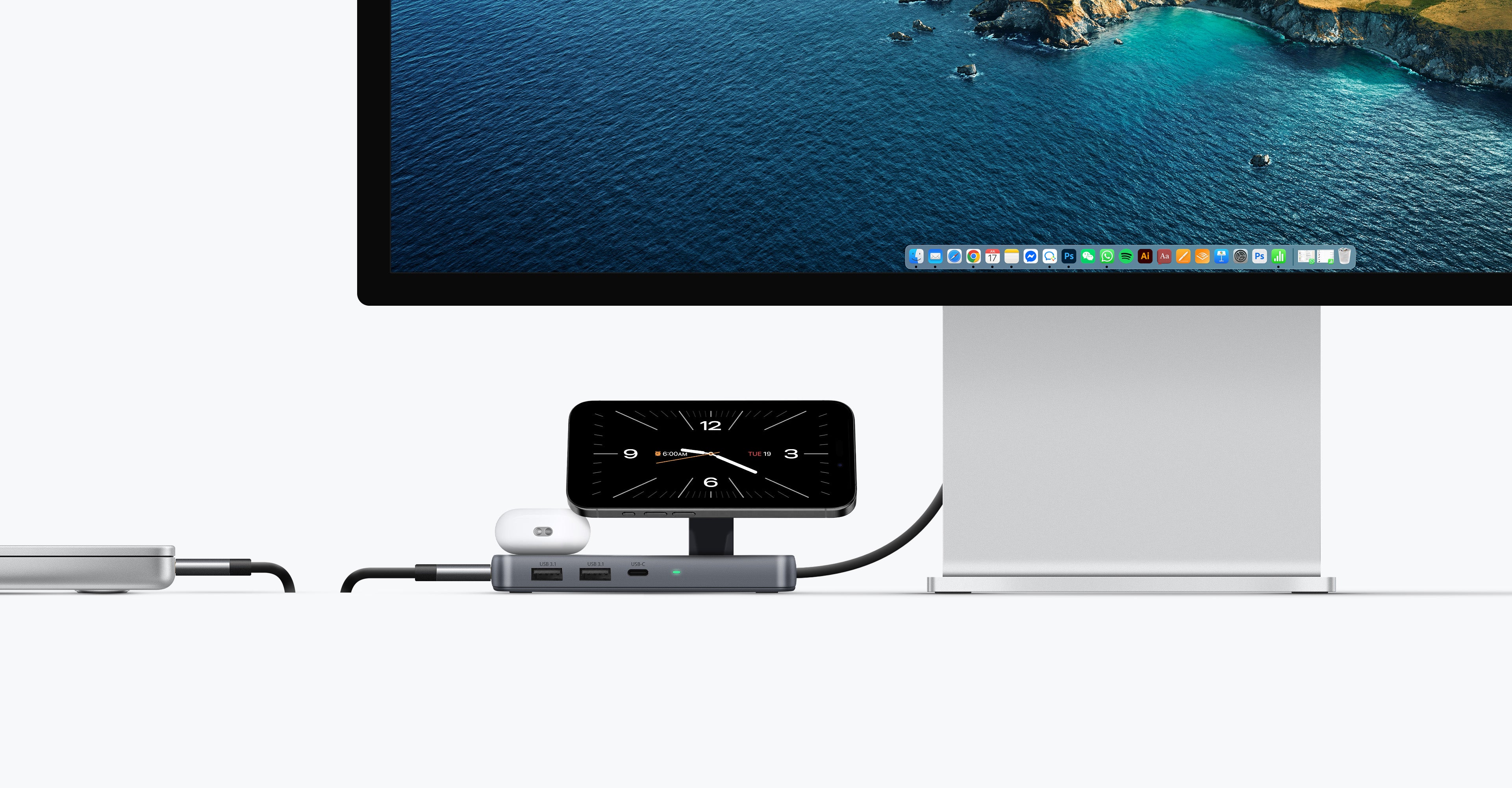 Docking Station | Wireless iPhone & AirPods Charger, Extend Display, 10Gbps, Power Delivery